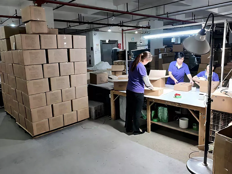 Abychom usnadnili balení a přepravu, založili jsme své vlastní obalové centrum poblíž našeho sídla v Dongguan. Toto centrum se specializuje na balicí řešení pro křehké předměty, jako jsou skleněné svíčky a difuzory. Můžeme vytvářet vlastní krabice a obložení a používáme ekologické materiály k ochraně předmětů, jako jsou skleněné difuzory a dekorativní keramika, což zajišťuje jejich bezpečnost během přepravy.