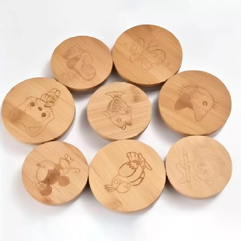 Dřevěná dřevěná víčka BYF, speciálně navržená pro skleněné nádoby, jsou praktická i esteticky příjemná. Vyrobené ze světla zbarveného přírodního dřeva s čistým, přírodním zrnem se cítí měkké a pohodlně na dotek. Nabízíme dvě možnosti designu: tisk s vysokým rozlišením pro zářivé barvy a živé detaily a laserovou gravírování pro rafinované textury a elegantní linie. Nabízíme široký výběr návrhů, včetně zábavných vzorů, jako jsou malá zvířata a čísla, z nichž každá je naplněna nádechem ručně vyráběných detailů a uměleckého vkusu.