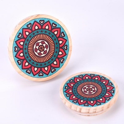 Personalizovaná dřevěná víčka BYF jsou vytvořena ze světla zbarveného přírodního dřeva, která má vzorec inspirovaný Mandala. Každé víko má svou vlastní jedinečnou osobnost. Symetrické geometrické tvary obklopují květinové motivy a zářivé barvy - oranžové, růžové, modré a zelené - vytvářejí uměleckou a jedinečnou estetiku. Víka jsou lehká a praktická a nabízejí pečetní i dekorativní funkce. Jsou vhodné pro domácí vůně, dárkové dekorace a další aplikace, dokonale mísí přirozenou texturu s personalizovanou estetikou.