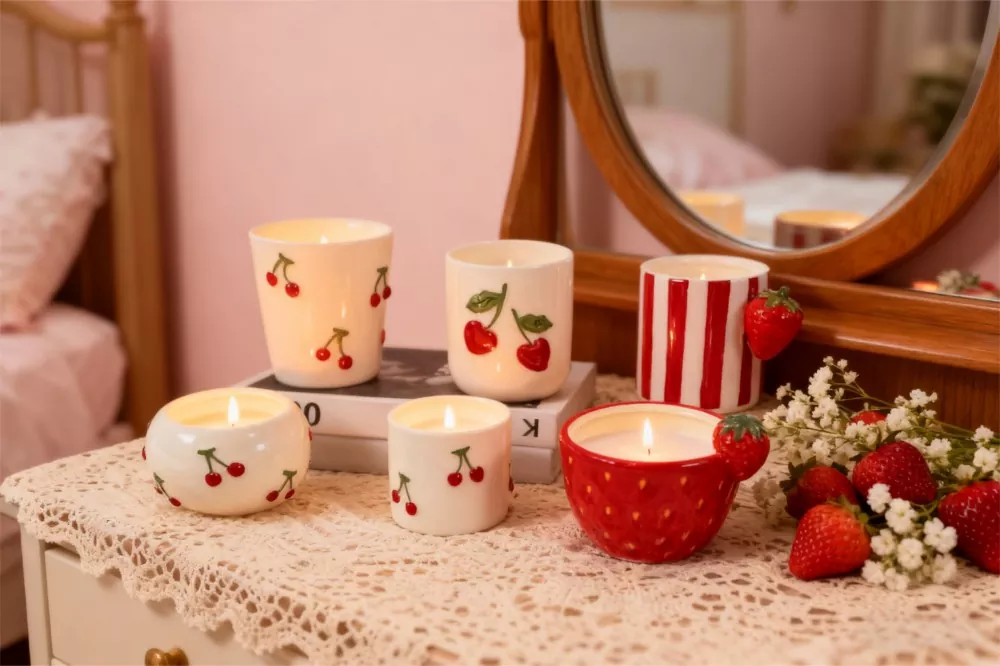 Série Super Adorable Ceramic Candle Jar od BYF obsahuje špičkové ručně vyráběné keramické sklenice na svíčky s „super roztomilým“ designem. Návrhy zahrnují klasické sladké prvky, jako jsou červené třešně, trojrozměrné mašle a jahody, s hladkou glazurou a různými tvary. Vyrobeno z bezpečných a ekologických materiálů, má vynikající tepelnou odolnost a dokonale se hodí ke standardním knotům a různým voskovým základům, díky čemuž je vysoce kvalitní nádobou na svíčky a uměleckým dekorativním předmětem, který zdokonalí váš domov.